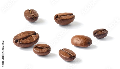 © Eni, Naklejka premium Roasted coffee beans scattered on white background