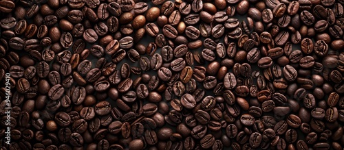 Fototapeta premium Roasted coffee beans texture background with copyspace
