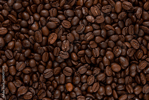 © Галя Дорожинська, Naklejka premium Roasted coffee beans. Texture of coffee beans. Coffee background.