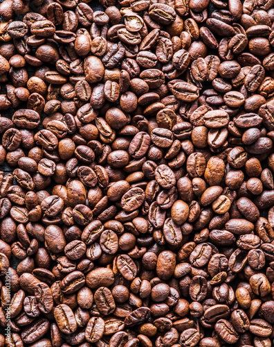 Obraz premium Roasted coffee beans. Top view.