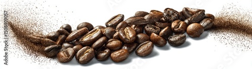 Obraz premium Roasted Coffee Beans With Coffee Dust