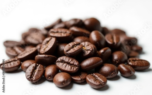 © H4P, Naklejka premium Roasted Coffee Beans with Green Leaves on White Background