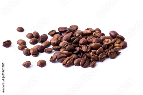 © Marina Biryukova, Naklejka premium Roasted scattered coffee beans on white background