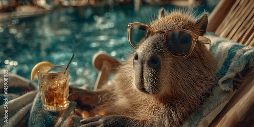 © horizon, Obraz premium Roasted turkey sits on a beachside dining table garnished with rosemary, overlooking ocean waves under clear blue sky, wine glasses adding elegance to the setting.