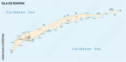 © lesniewski, Fototapeta premium roatan island road vector map, honduras