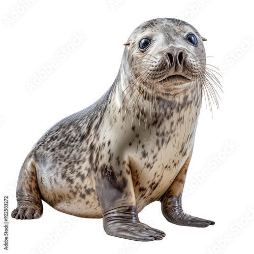 Fototapeta premium Robbe, Kegelrobbe, freigestellt vor transparentem Hintergrund, Generative AI