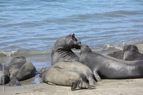 Fototapeta premium Robben / See-Elefanten an der Küstenstraße (USA / San Simeon)