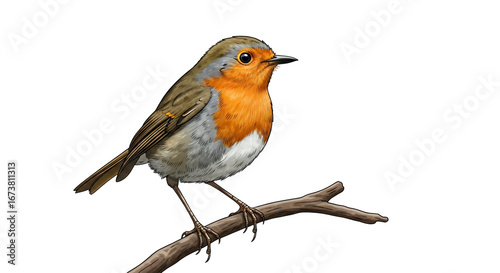 © Binyameen, Fototapeta premium Robin bird isolated on white background for nature and wildlife illustration