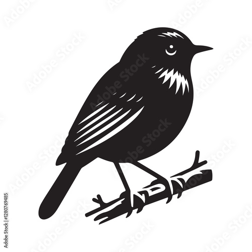 Fototapeta premium Robin bird Silhouette Vector Illustration, Solid White Background.