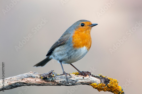 Fototapeta premium Robin - Erithacus rubecula, standing on a branch