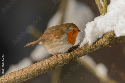 © Digital Nature , Fototapeta premium Robin on a snow covered branch eating snow in the winter