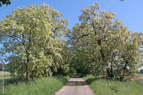 © horst jürgen schunk, Fototapeta premium Robinien an einem Weg in Blüte