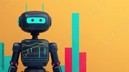 © IYearDesign, Fototapeta premium Robot advisor with financial charts, investment, AI-driven stability