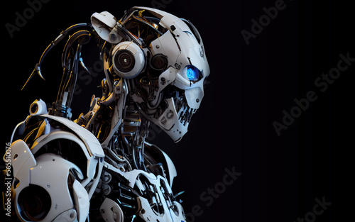 Fototapeta premium Robot android with blue lights isolated in black background created with a...