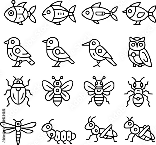 © danny, Fototapeta premium Robot Animal Vector Icon Set – Fish, Birds and Insects