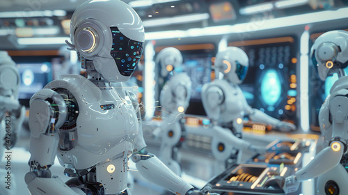 Fototapeta premium robot artificial intelligence successful business. AI robot working with...