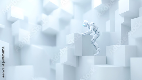 Obraz premium Robot Ascending Geometric Staircase in a Futuristic Environment