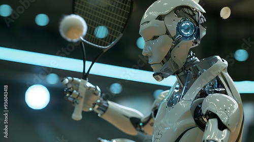 © sarana, Fototapeta premium Robot Badminton Player Smashing Birdie: A robot badminton player smashing the shuttlecock with precision.