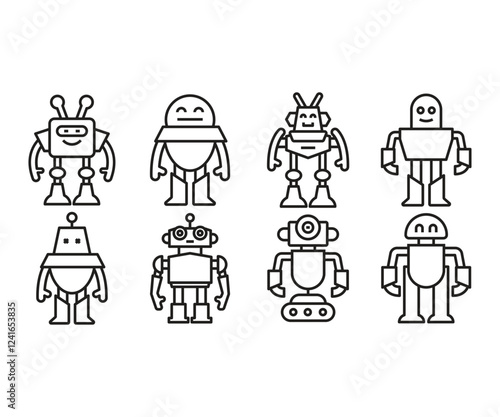 © bigpa, Naklejka premium robot character icons set vector illustration