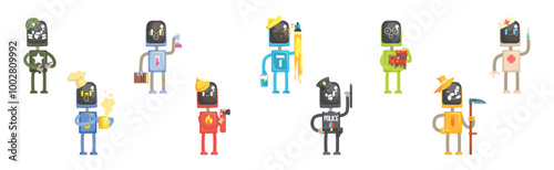 Fototapeta premium Robot Character of Different Profession with Tool Vector Set