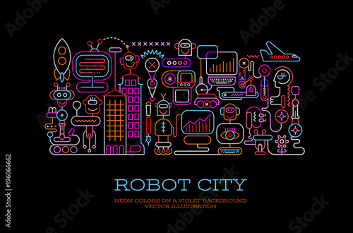 © danjazzia, Obraz premium Robot City conceptual vector illustration