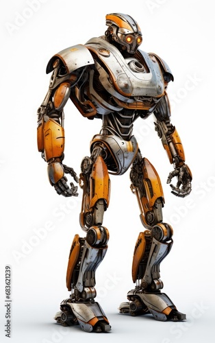Fototapeta premium Robot F102 orange fighting old rusted iron One full body isolated on white background.