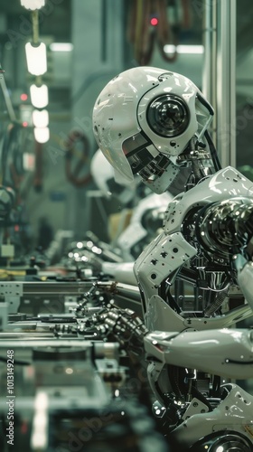 © Viacheslav, Fototapeta premium Robot fabrication center of tomorrow, 4K hyperrealistic photo