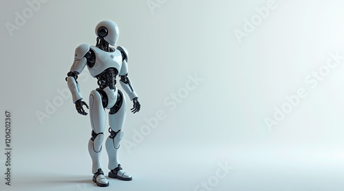 © Lednev, Fototapeta premium Robot has the appearance of a human on a white background with a free space.