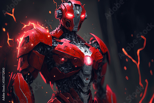 Fototapeta premium Robot in red drawing. Generative AI