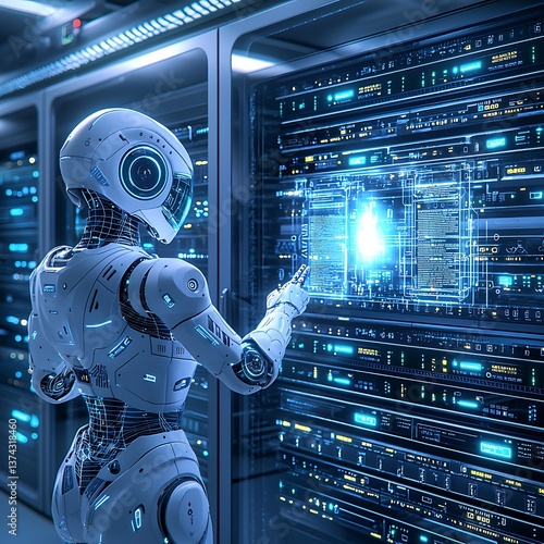 Obraz premium Robot managing server data center. (1)