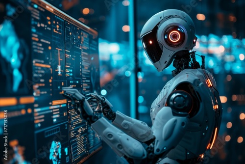 © Sandris Veveris, Fototapeta premium Robot Observing a Screen Display