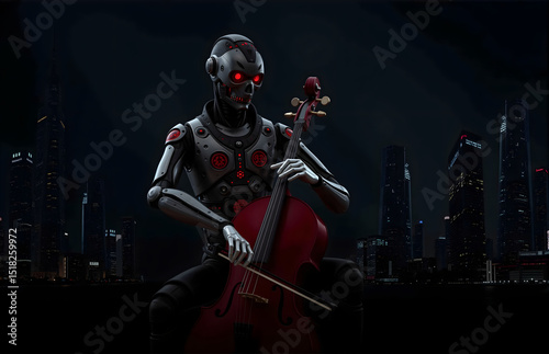 © 威宇 沈, Naklejka premium Robot Playing Cello at Night