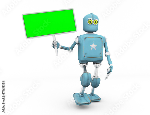 Naklejka premium Robot Retro with banner Cartoon funny 3D video render - walk cycle. isolate on white