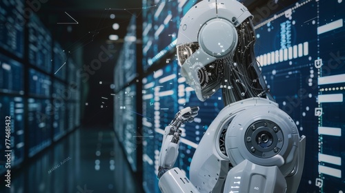 © Prostock-studio, Fototapeta premium Robot Standing in Futuristic Server Room
