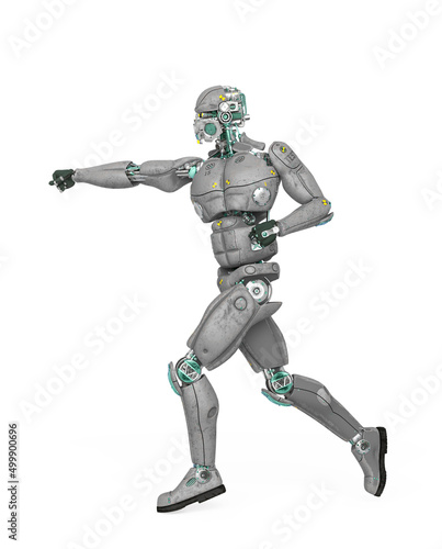 © DM7, Fototapeta premium robot test is doing a karate pose