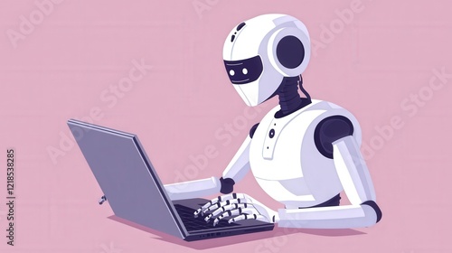 © Mnur, Obraz premium Robot Using Laptop Computer Technology Innovation