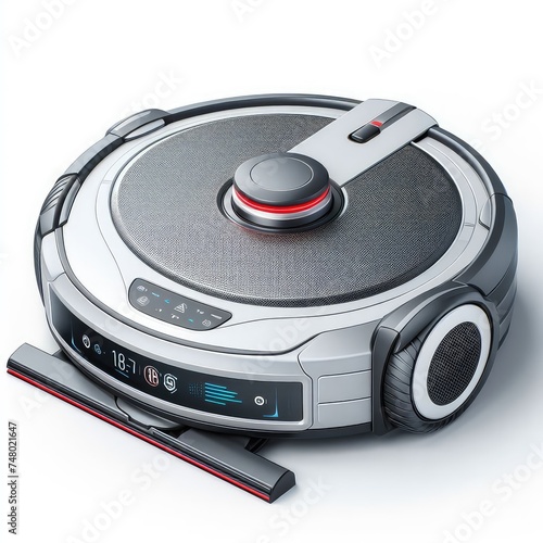 © Mo Stock, Fototapeta premium Robot vacuum cleaning floor isolated on a white background
