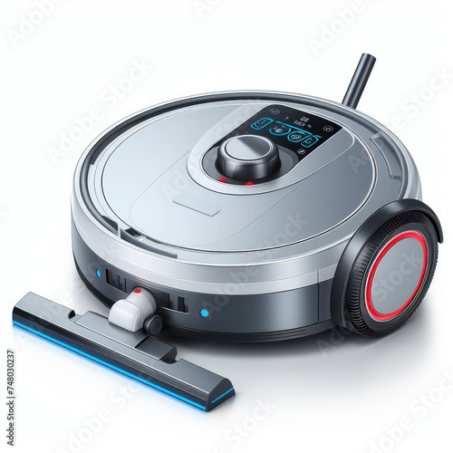 © Mo Stock, Fototapeta premium Robot vacuum cleaning floor isolated on a white background