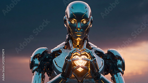 © Kamidrago, Naklejka premium Robot, Valentine's Day, heart