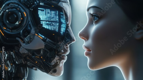 © Futureaz, Fototapeta premium Robot with Digital Display Face Interacting with a Human