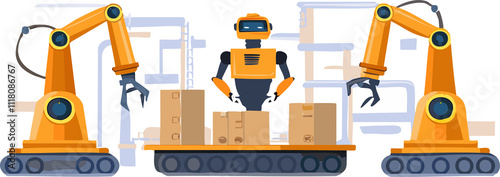 © sakdam, Fototapeta premium robot work in factory isolated ai generative