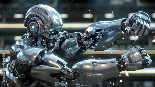 © sarana, Fototapeta premium Robot Wrestler Grappling Opponent: A powerful robot wrestler in the midst of grappling its opponent.