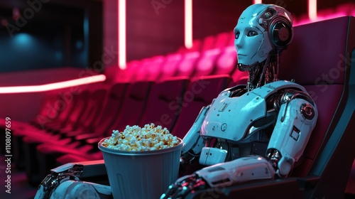 © YauheniB, Naklejka premium Roboter im kino mit popcorn