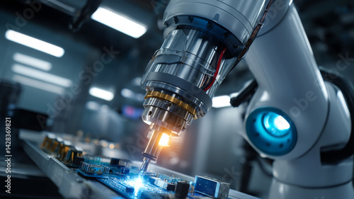 © Tony A, Obraz premium Robotic Arm Assembling Circuit Board with Precision