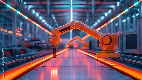 © ali, Fototapeta premium Robotic Arm Engaging in Precision Manufacturing in a High-Tech Factory