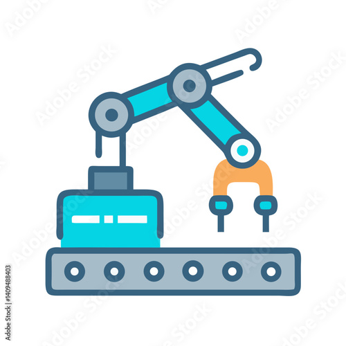 Fototapeta premium Robotic Arm on Conveyor Icon Representing Automated Manufacturing