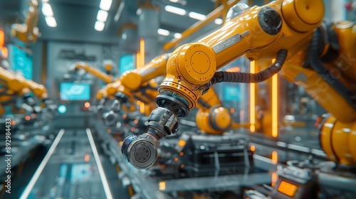 © Wahyu, Fototapeta premium Robotic arms working on assembly line in modern industrial facility with advanced technology
