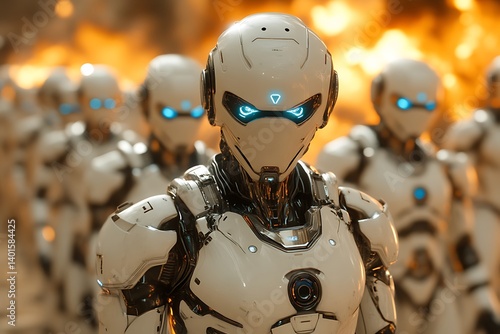 Fototapeta premium Robotic army amidst fire.