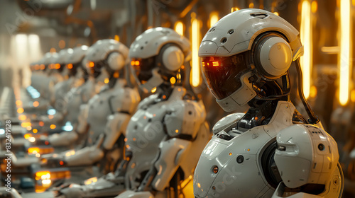 Fototapeta premium Robotic assembly line, illustrating futuristic concepts of technology, automation, and artificial intelligence.