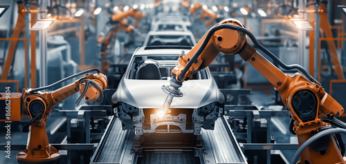 © Natali, Fototapeta premium Robotic assembly line in an automotive factory